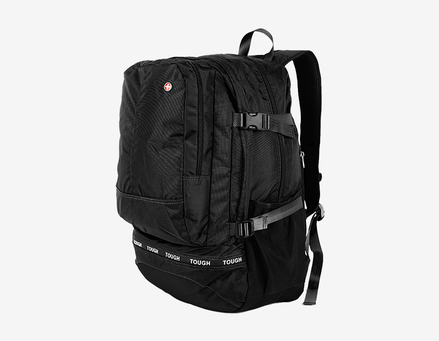 Mochila Tough confeccionada con tela poliéster semi impermeable, ofreciéndote la tranquilidad de saber que tus objetos estarán a salvo ante lloviznas inesperadas.